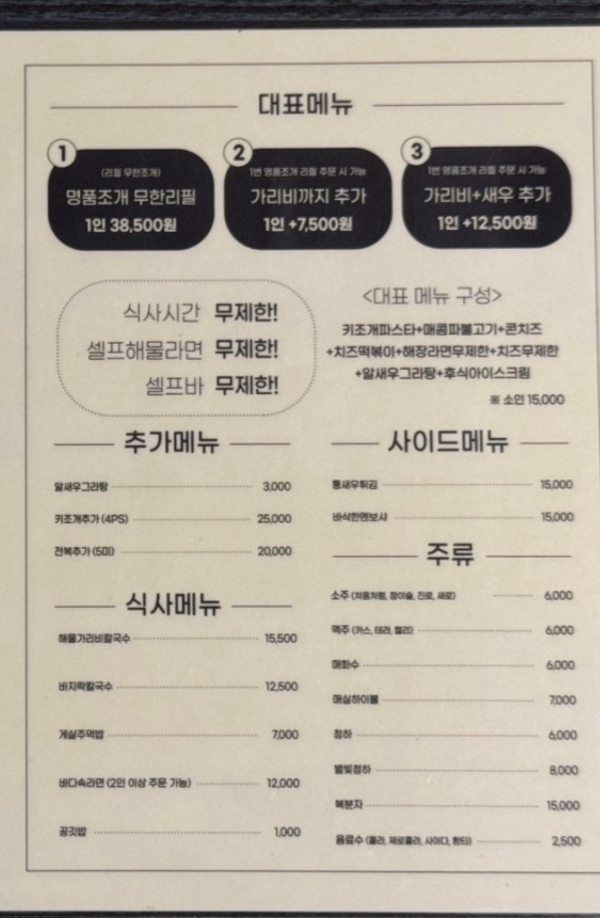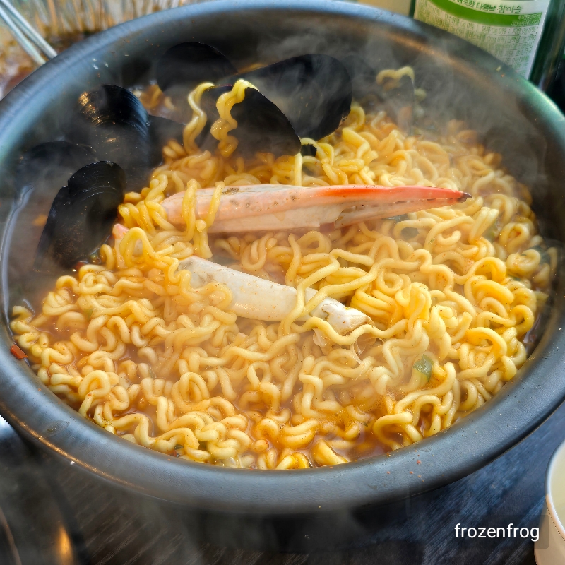 라면에 불고기, 떡볶이, 콘치즈, 홍합에 게다리까지