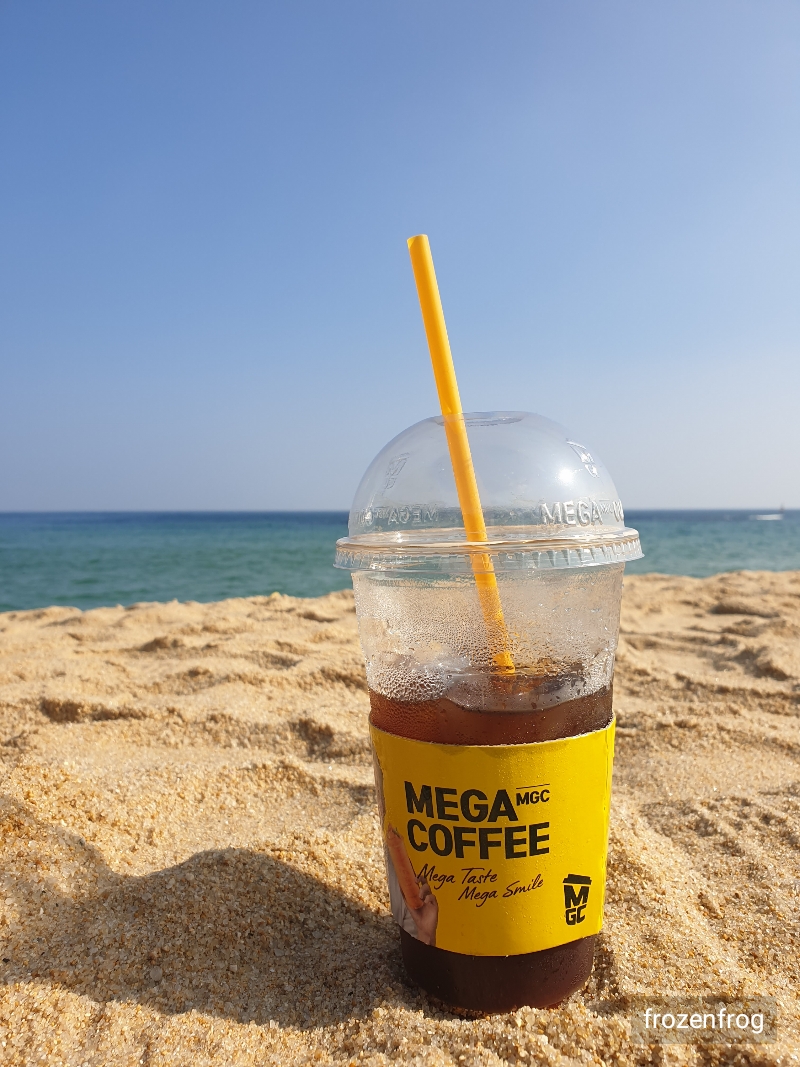 커피사서 바다에 자리잡고 앉아서 먹음.