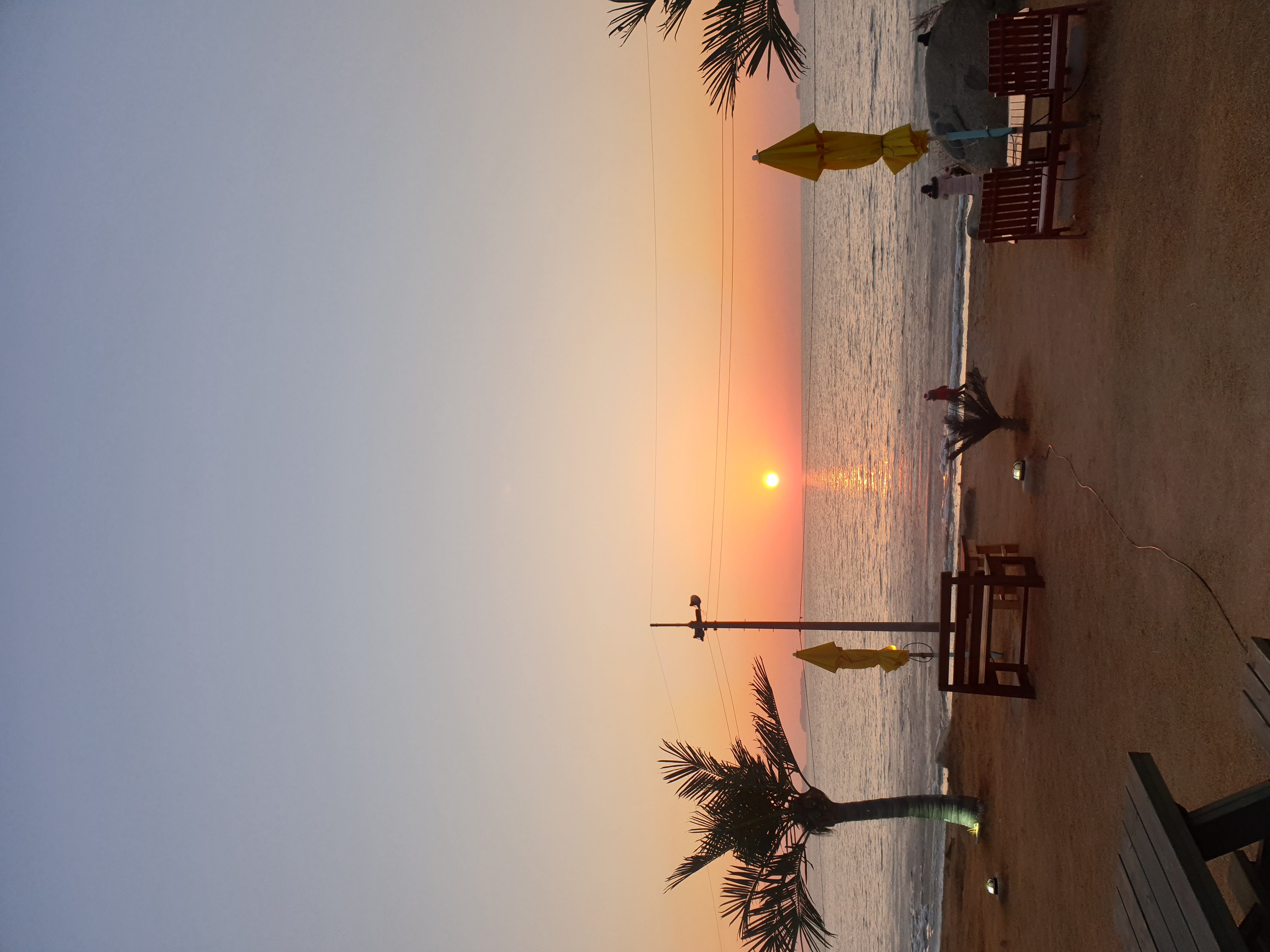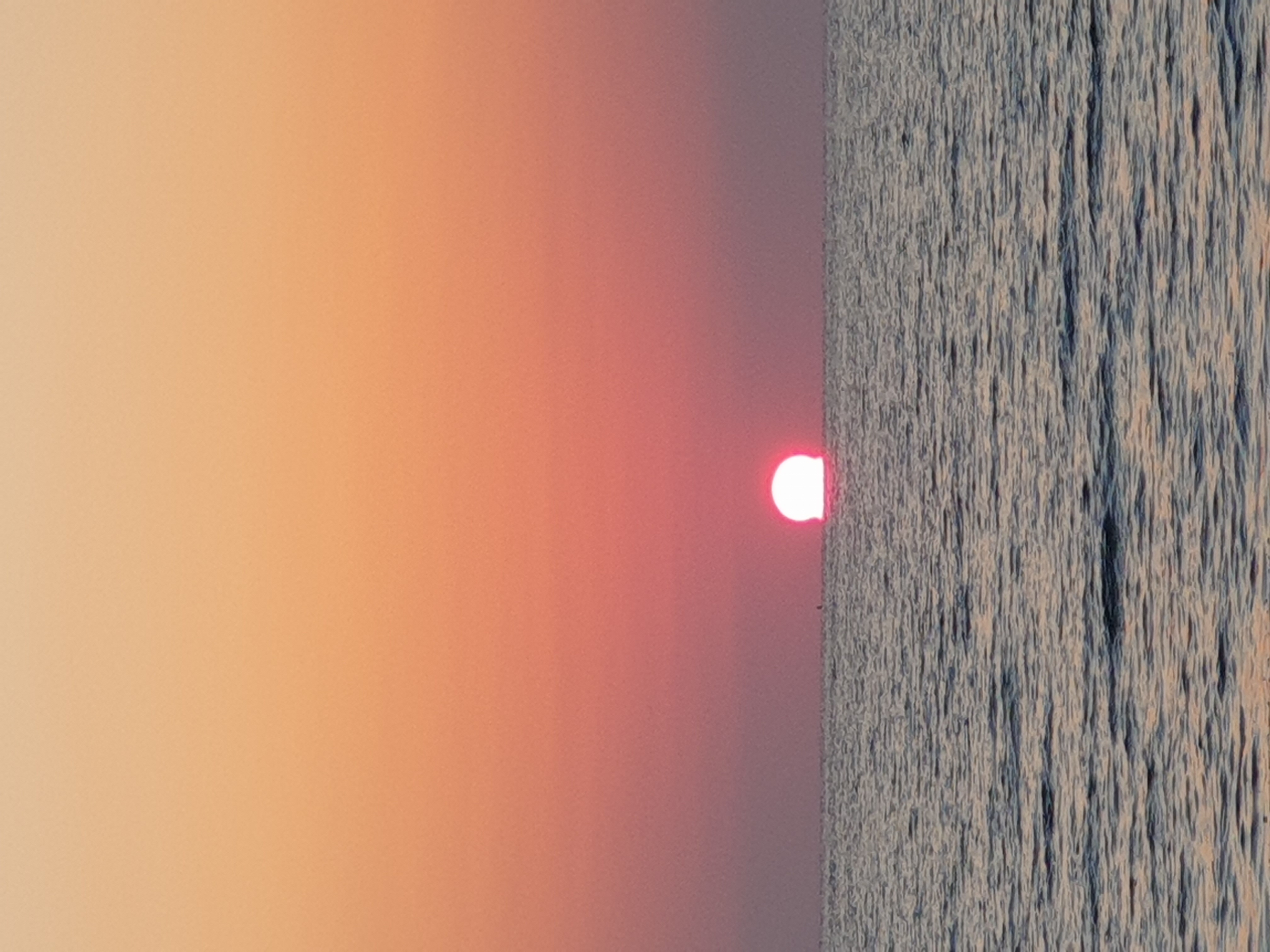 저 멀리 바다 넘어 보이는 일출.